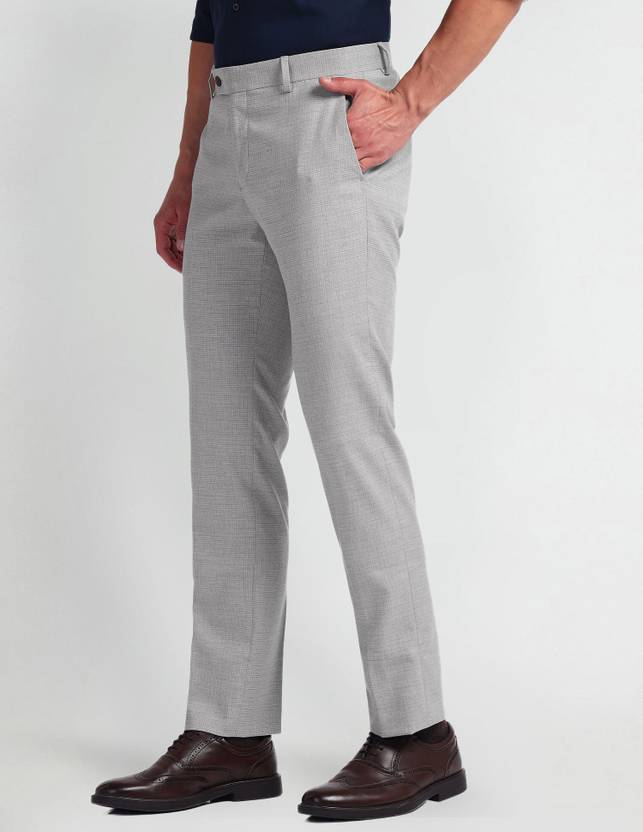 Man's, Slim Fit Trousers, UncategorizedMen Slim Fit Grey Polyester Formal Trousers For Western Wear
